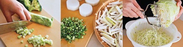 キャベツはピーラーでしんごとせん切りに。ドレッシングをかけるだけでサラダになるし、お好み焼きやメンチカツもすぐに作れます。