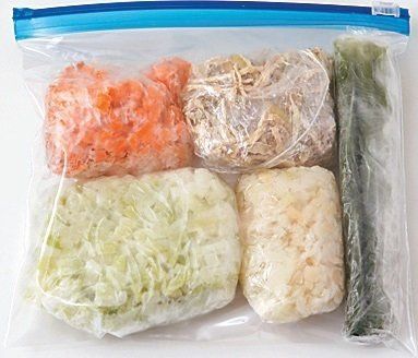 ●市販の冷凍野菜は保存袋に移せば残さず使える