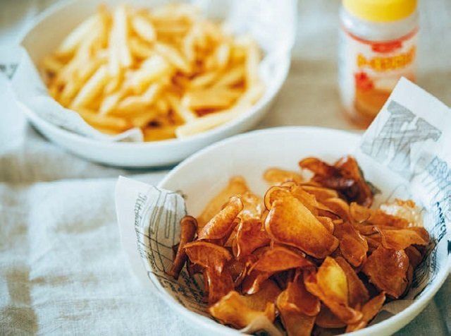 さつまいも半分が、山盛りチップスに!「1本100円くらいで蒸しても焼いても使え、コスパ最強! フライドポテトも何度出しても喜ぶから、おいもサマサマ」