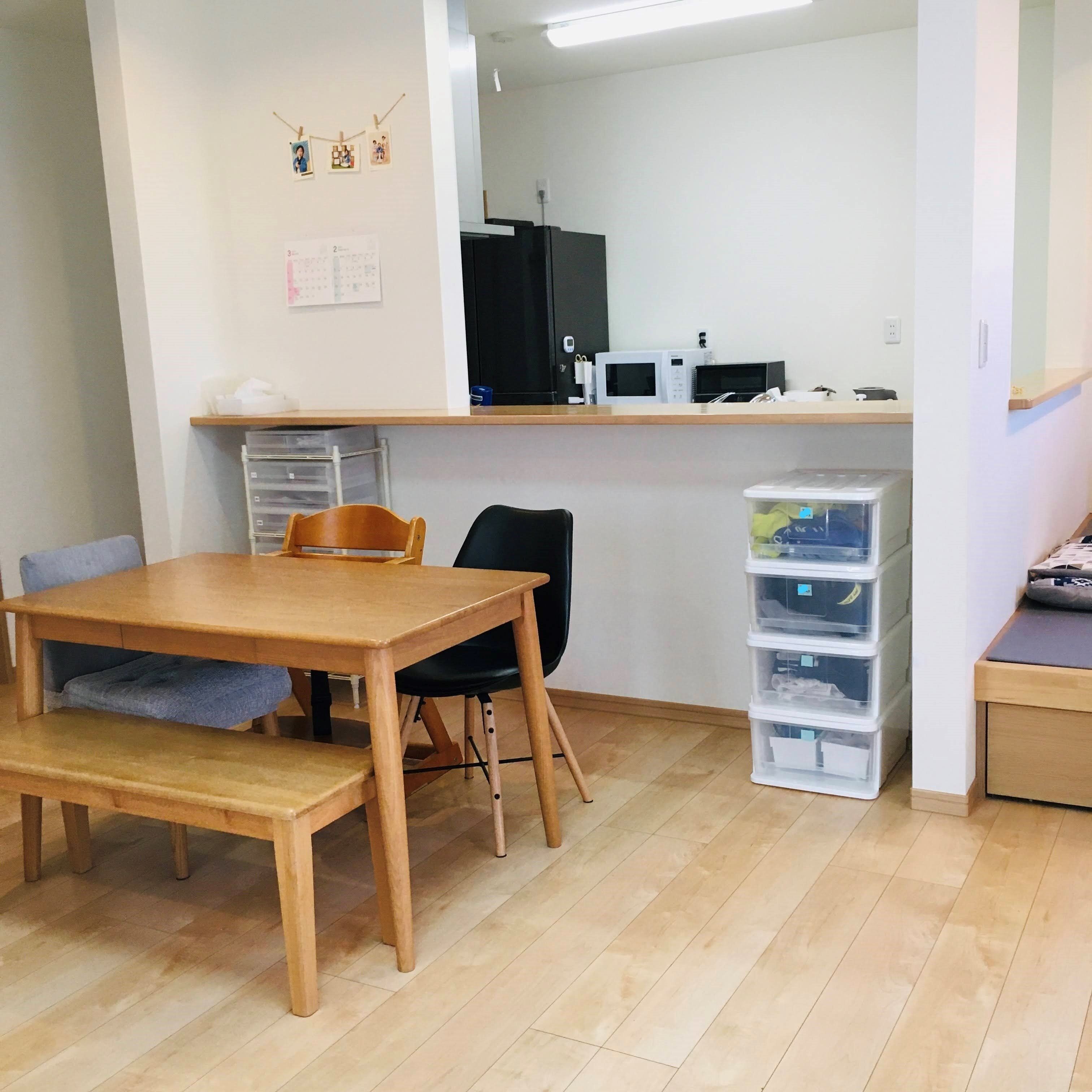 わが家のリビングは3人の子どもたちが宿題をしたり、おもちゃで遊んだりと雑然としていることが多いのですが、すぐに片付けることができます。