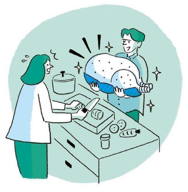 月3万円の小遣いでやりくりしてくれるのでありがたいのですが、突然妙な肉を買ってくるので困ります。七面鳥まるごとのときは解凍に2日間&焼くのに10時間……。「ありがとう」と伝えつつ、「次は使いやすい肉にしてくれるとうれしいな」とお願いしました(サンキュ!アンバサダー・森田法子さんの夫)