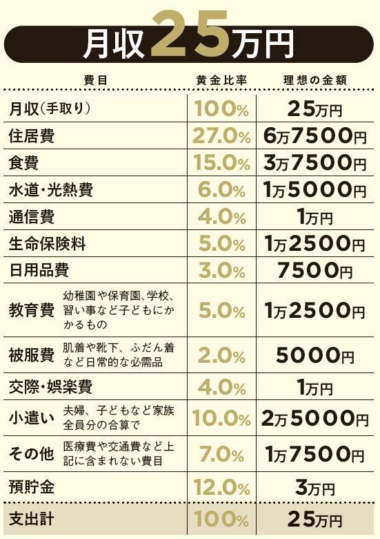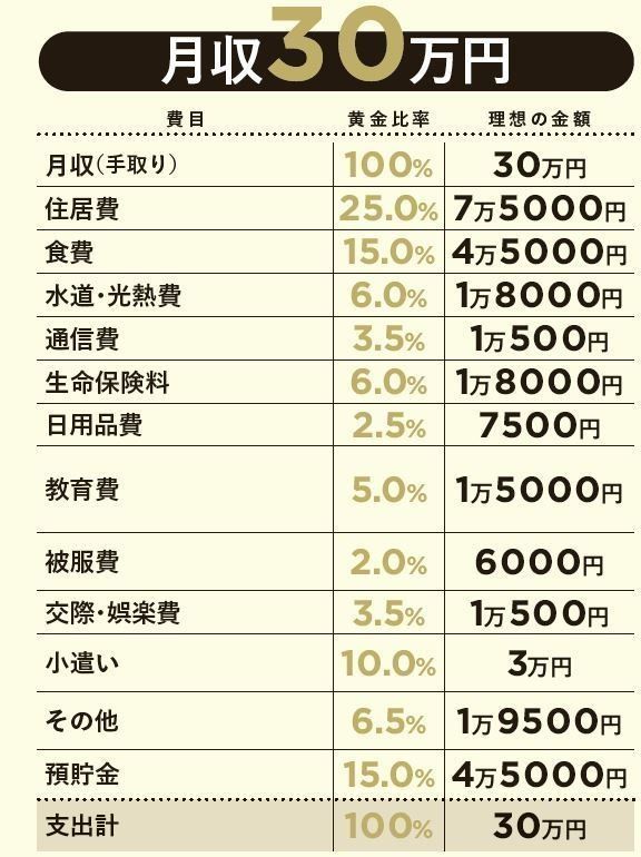 住居費、食費、教育費…何にいくらかければお金が貯まるのかわからない。そんなとき参考になるのが、家計の「黄金比率」です。貯まる家計を研究し続ける専門家が、月収別に何にいくら使うのが適正かズバリ教えます。