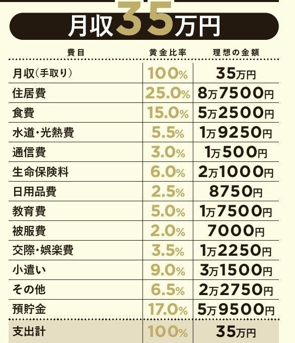 □月収の黄金比率をチェックする