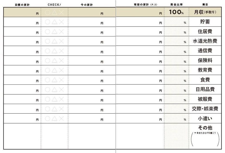 • 家計の黄金比率の書き方のコツ