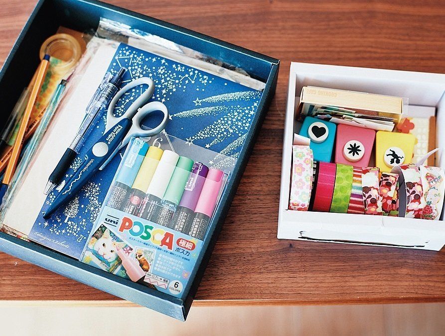 すきま時間に出せるよう、ペンやシールなどをまとめた懸賞セットを用意。欲しい物だけ厳選し、1枚のハガキをていねいに書いて当選を呼び込みます。