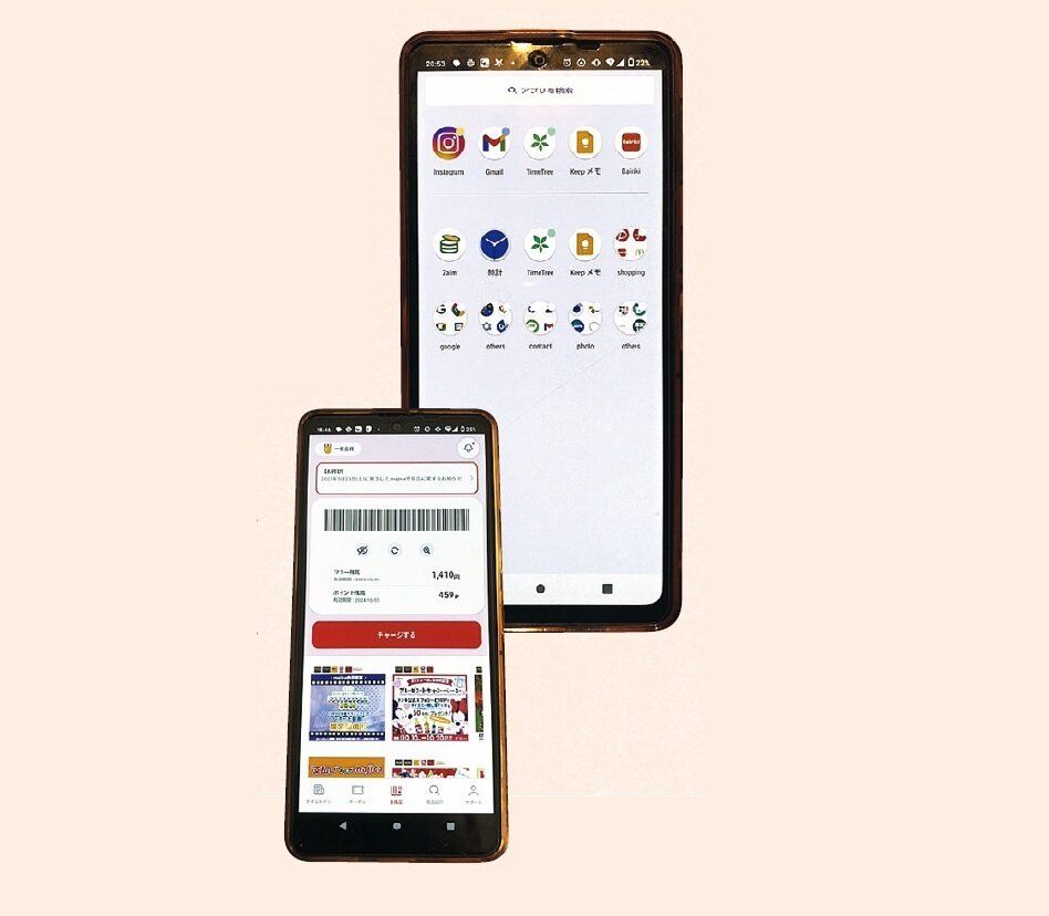 スマホは、学校関連や友人との連絡と、たまにメルカリ、ジモティーを使うくらい。ポイ活もやっていないので、最小限の物だけ並べています。