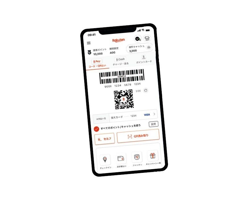 (2)会計時に楽天ペイアプリ内の楽天ポイントカードを提示する → 0.5%~1%還元