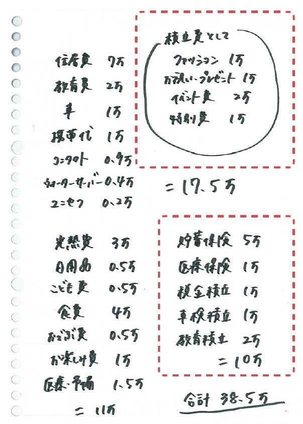 Hさんのお宅の特別出費(ファッション、イベント等)の合計額は年60万円。「特別出費は目的別に毎月積み立て。調子に乗って使いすぎないよう、特別出費だけは残額がわかりやすい現金で管理しています」。
