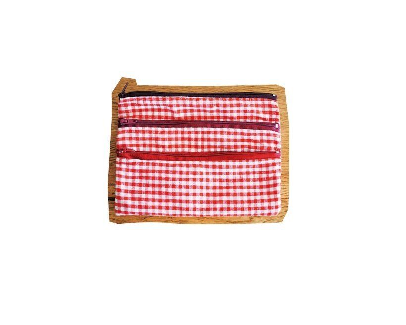 やりくり費を手元でラク~に現金管理するために、3段ポーチを手作り。必要なお金だけ財布に入れて持ち運びます。