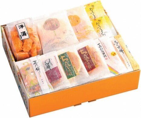 もち吉定番のあられとおせんべいの詰め合わせ。10種類の味が楽しめて、満足度大!2箱届くので手土産はもちろん、来客用にも重宝。
