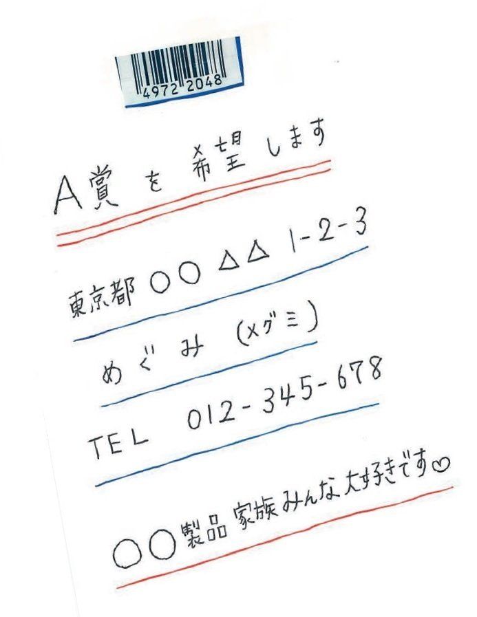 スーパーのレジにある応募ハガキは、持ち帰って家で吟味