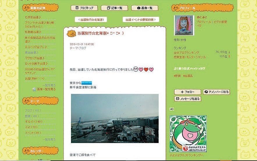 3年ほど前からブログで当選報告をしたり、懸賞仲間と情報交換をするように。「応募ハガキに書く『当選したらブログにアップします』のひと言は当選を引き寄せる効果があると思います」。
