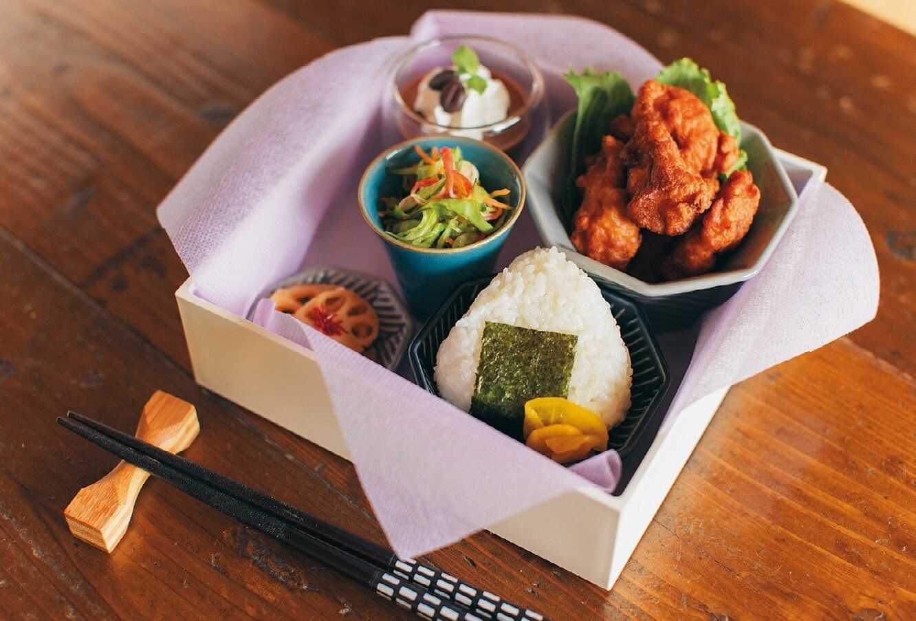 「環境が限定された船での食事は、目でも楽しんでもらえるよう、器を工夫していました」。いつものおかずも小鉢に分けて盛り付けたり、わっぱ弁当箱に詰めたりするだけで高級感がアップ!