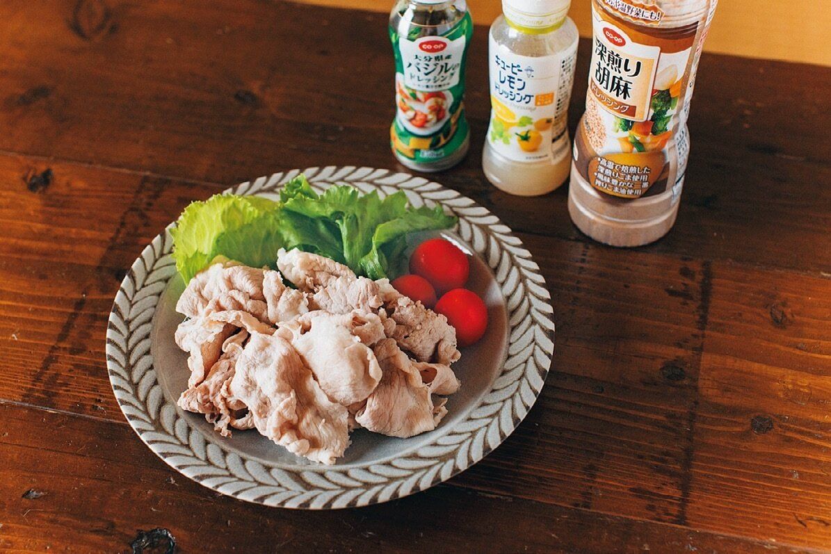 例:献立に悩んだら、ゆでた肉+ドレッシングだけで主菜に!