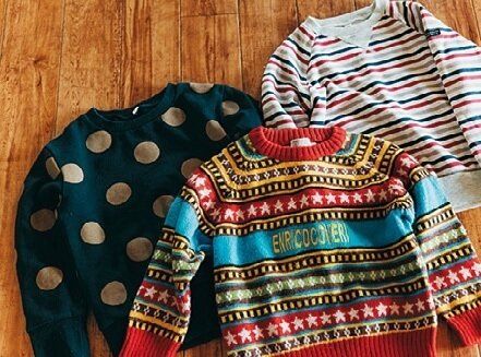 子ども服はすぐサイズアウトするので、古着で質のいい物を選ぶように。シーズン終わりのセールで、来年用のトップス3着、ボトムス3着を目安に購入。