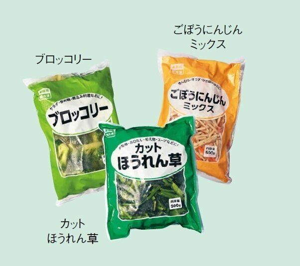 下処理いらずで、そのまま使えて便利。ごぼうにんじんミックスは煮ものや煮込み、汁ものなど幅広く活躍。ブロッコリーやほうれん草は食卓の彩りにも。