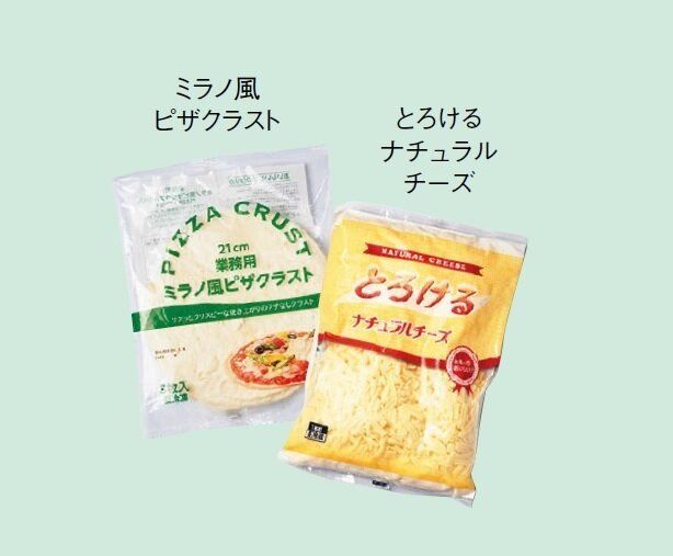 この2品があれば手軽にピザを楽しめ、デリバリーいらず。大容量チーズは小分けにし、片栗粉をまぶして冷凍すると、パラパラになって使いやすい。