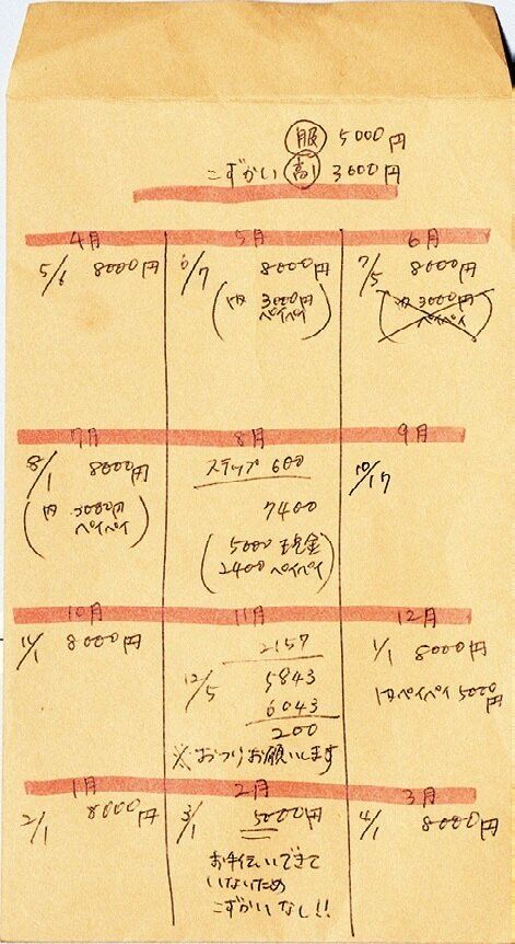 (長男の下着・靴下を除く被服代込み。大学生の長女はバイトを始めたので小遣いはなし)