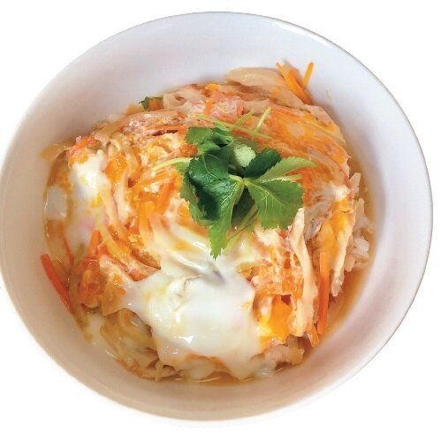 ちくわ、玉ねぎ、にんじんをめんつゆで煮て、卵でとじるだけ。100均に売っている電子レンジ調理で親子丼ができるグッズを使えば、より簡単!