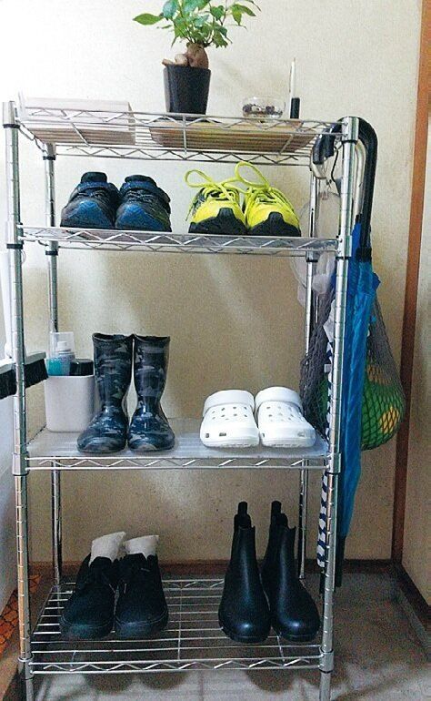 「サイズアウトした子どもの靴や足が痛くなるヒール靴を処分して1人2足ずつに厳選。玄関が広々して、脱いだら棚にしまうなどていねいに扱うように。服も数をしぼって大切に着ています」。
