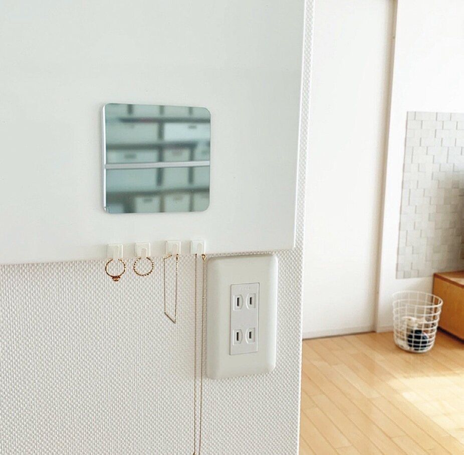 - サッと身につけたいもの→アクセホルダーと鏡を壁につける