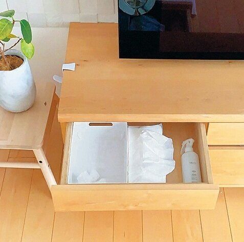 - テレビ台の引き出しにゴミ入れをつくってポイ捨て防止