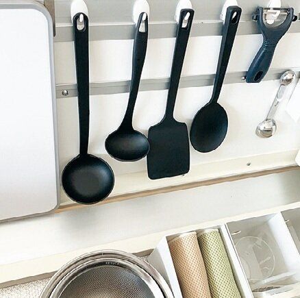 - 出しておきたくないキッチンツールはシンク下の扉に引っ掛け収納