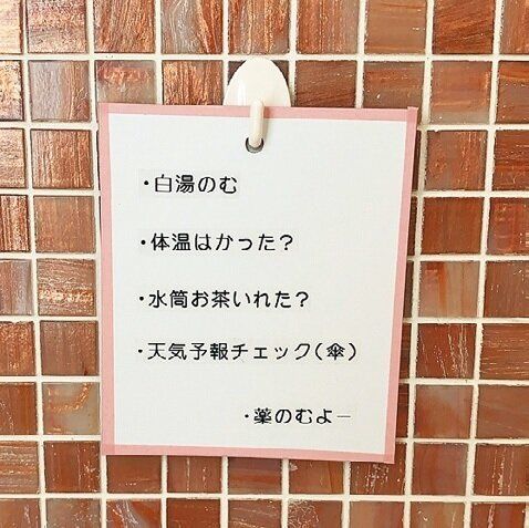 忘れっぽいと自覚しているから「文字」でしっかり対策。ママ自身の「やるべきこと」のリマインダーになるだけでなく、平仮名で書いておくことで子どもにも行動を促せます。