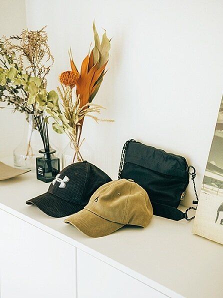 キャップやバッグはボーイッシュな物を選んで小6の長男とシェア。身長も同じくらいなのでトレーナーやパーカーも共有。「2人で1着を着回すと、コスパが抜群にいいです」。