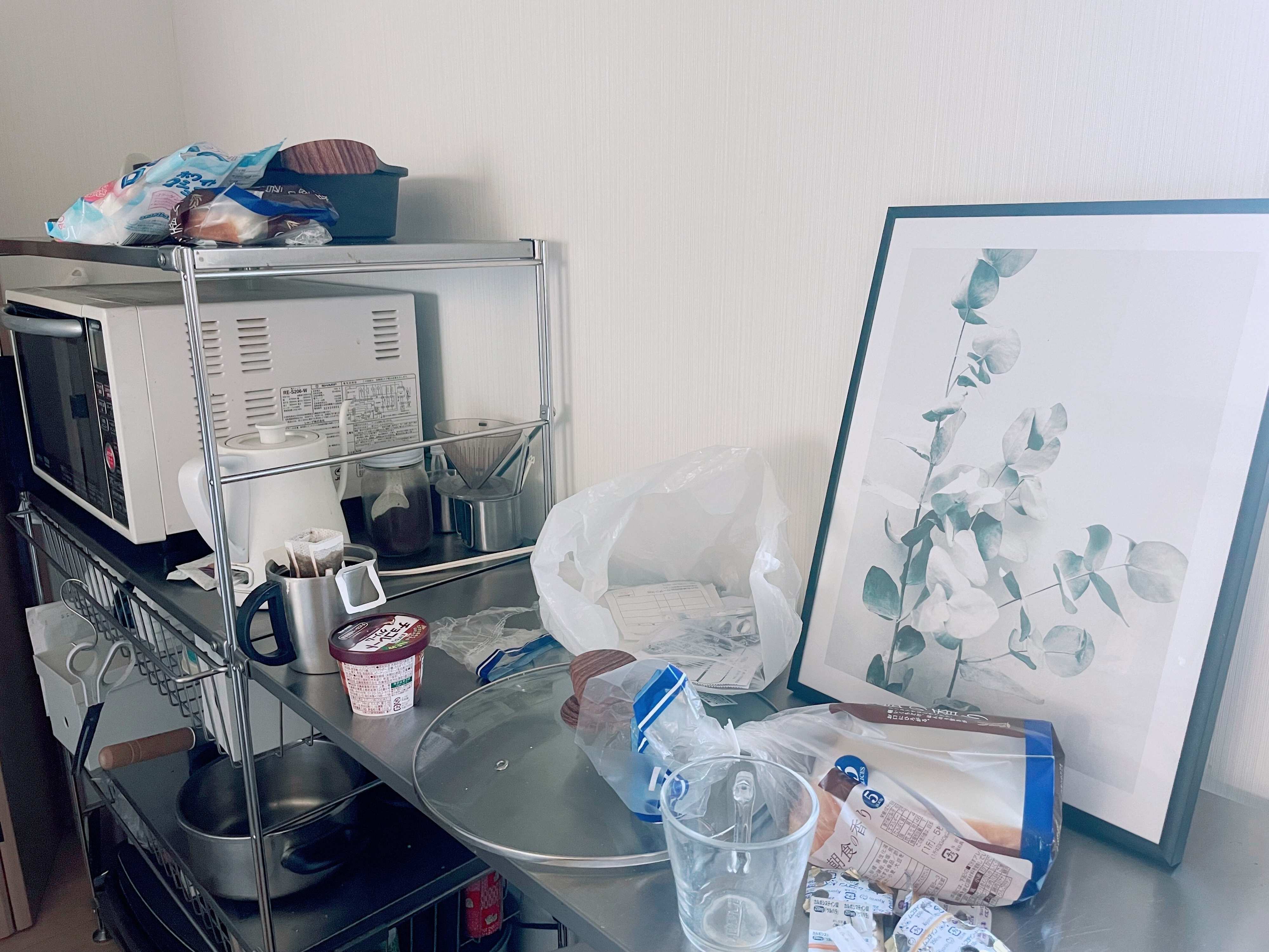鍋と薬、コーヒーの3個を片づけただけですが、1つ前の写真と比べたら少しすっきり見えませんか?