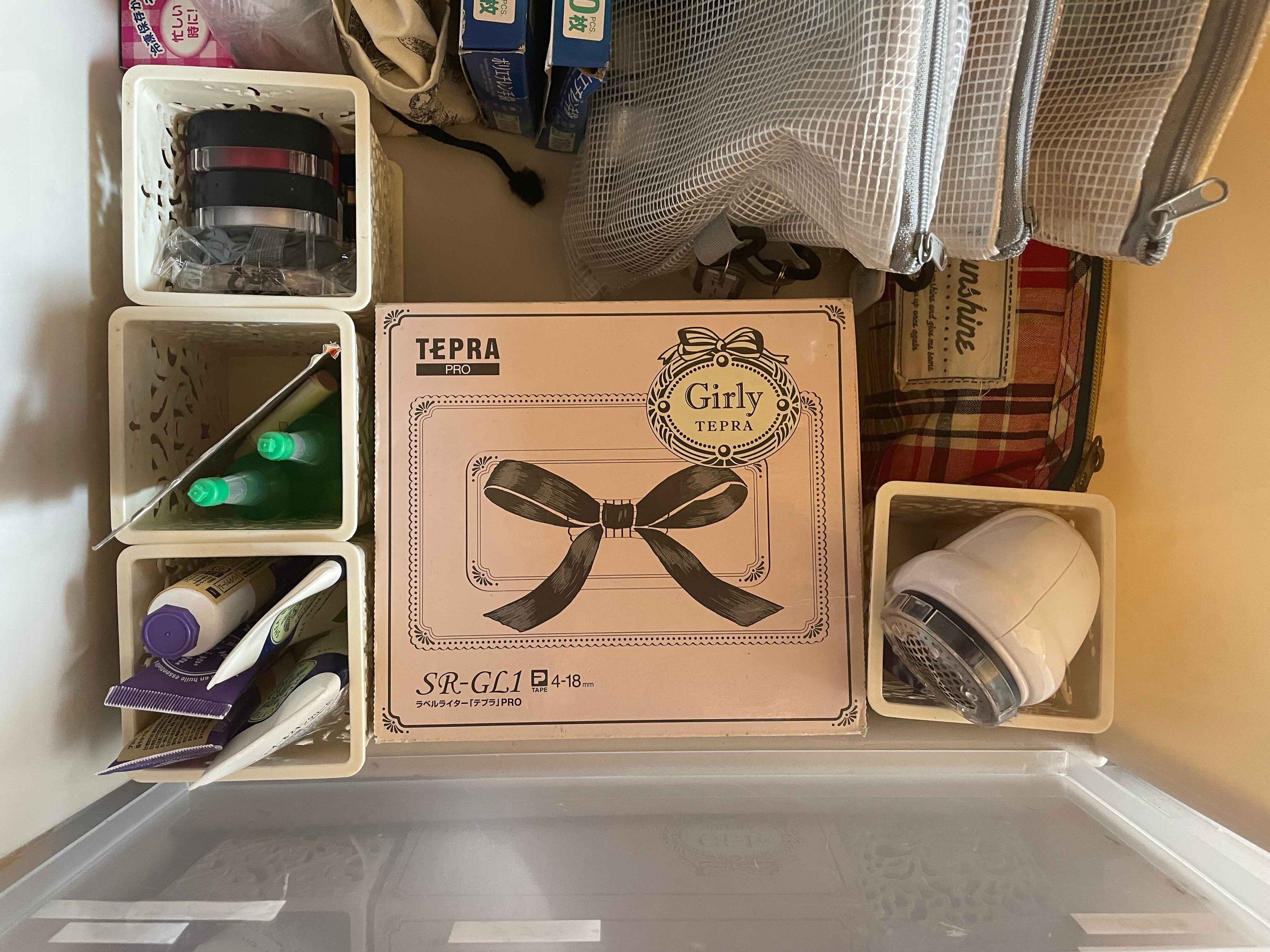 中には、ぴったり入るカゴを入れてありますが、中身がよく見えないのをいいことに、色々と詰め込まれていました。