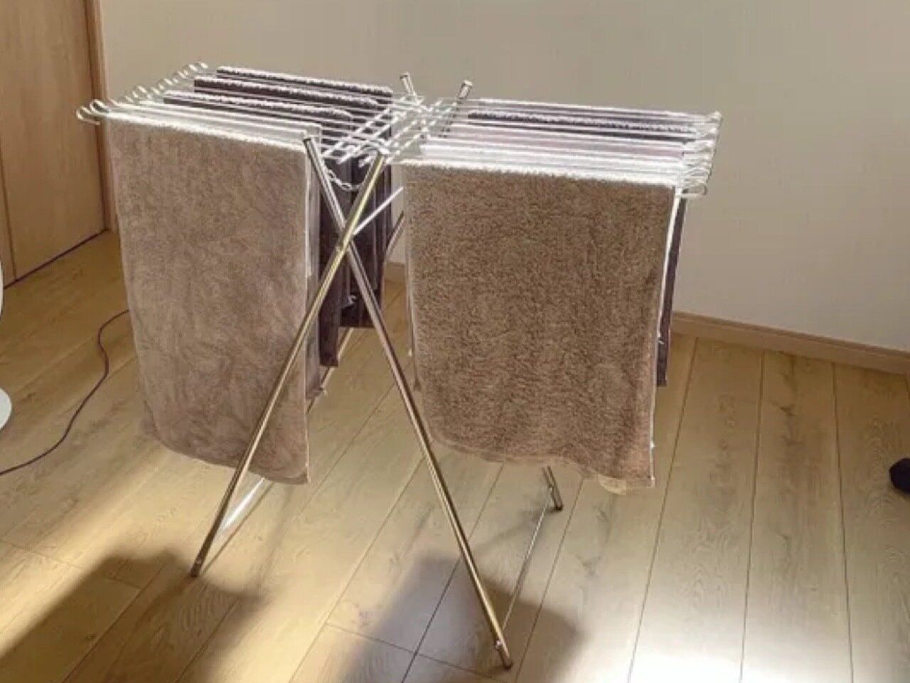 現在は、物干しスタンドで部屋干しメインで過ごしています。