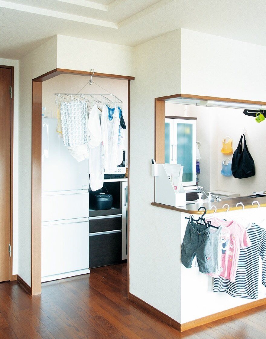 「室内に洗濯物が干せないからって、室内干しラックを買うのはちょっと待った!狭いわが家にラックを置いたらますます狭くなる」と、かけられる場所に手当たり次第かけたら……意外とイケた!(笑)