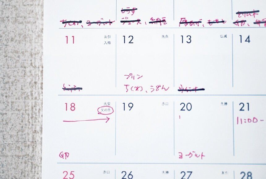 カレンダーに食材の消費期限をメモしておけば覚えてなくても使い切れる