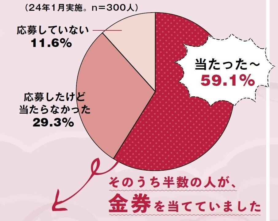 ・当たった:59.1%(そのうち半数の人が、金券を当てていました)