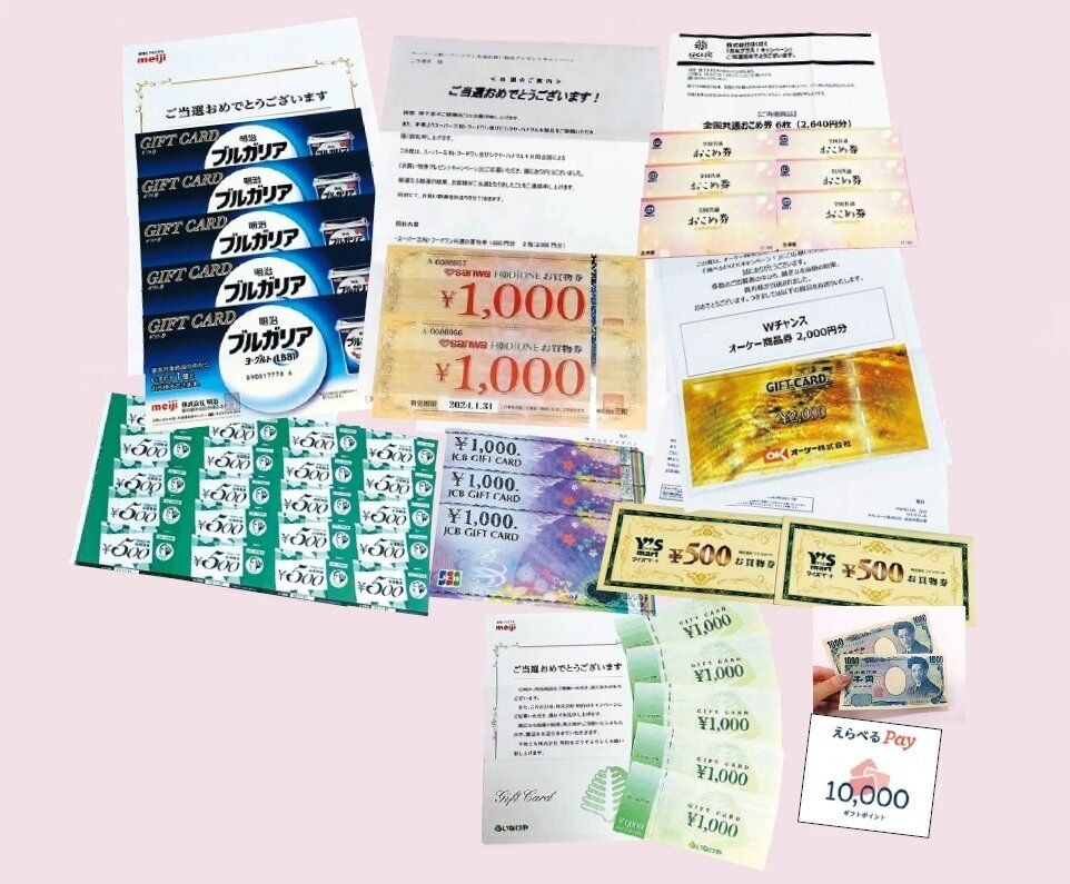 □ SNS懸賞で1万円分の旅行券が数回。ユニクロやサーティワンアイスクリームのギフト券も当ててます。(M・Sさん)