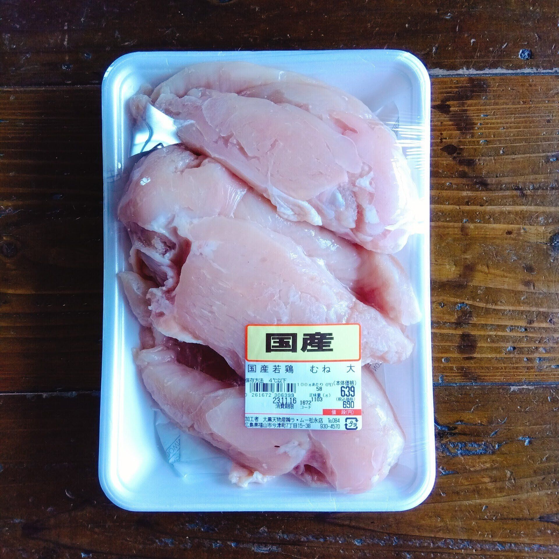 国産の鶏むね肉は、100gあたり70円以下だと超お買い得。