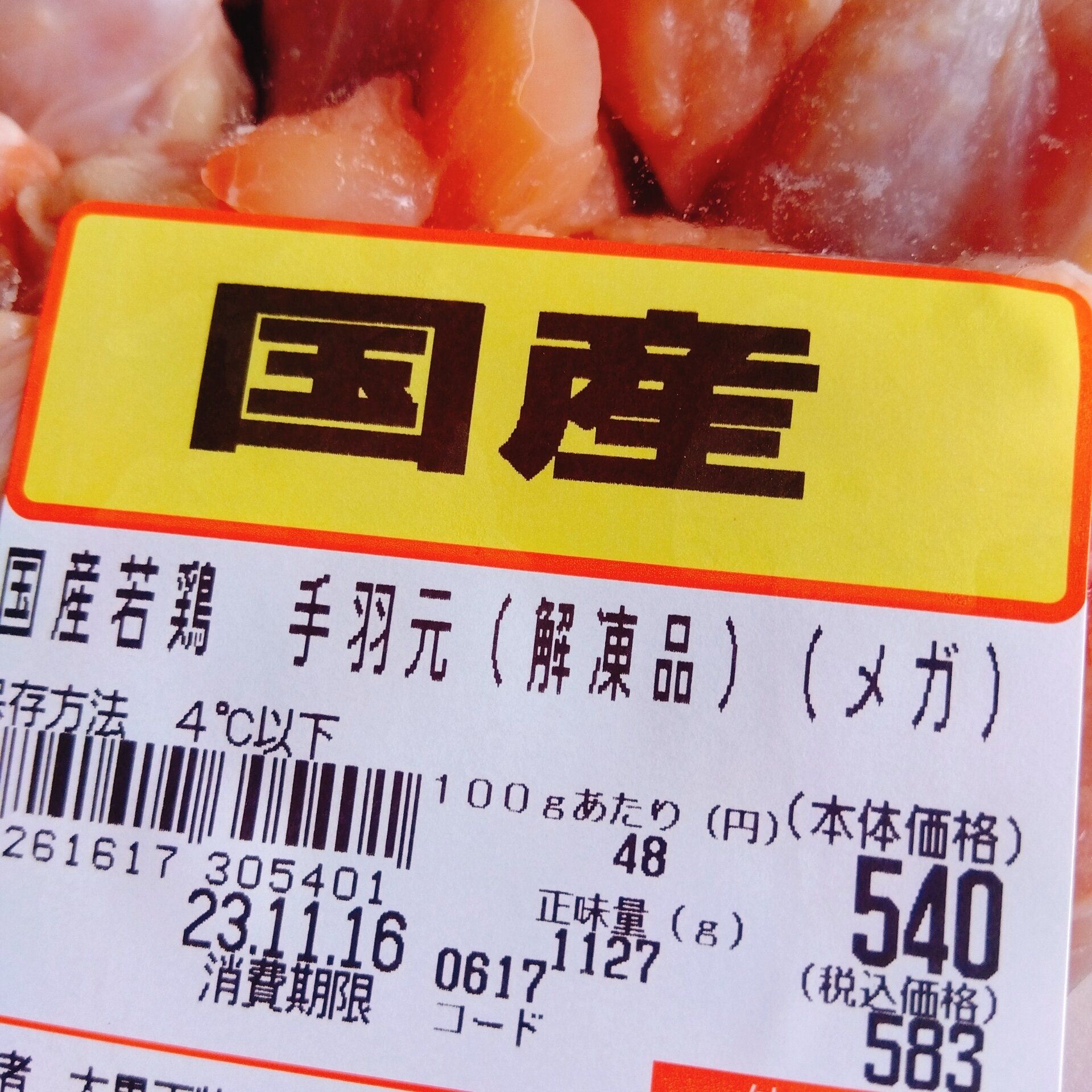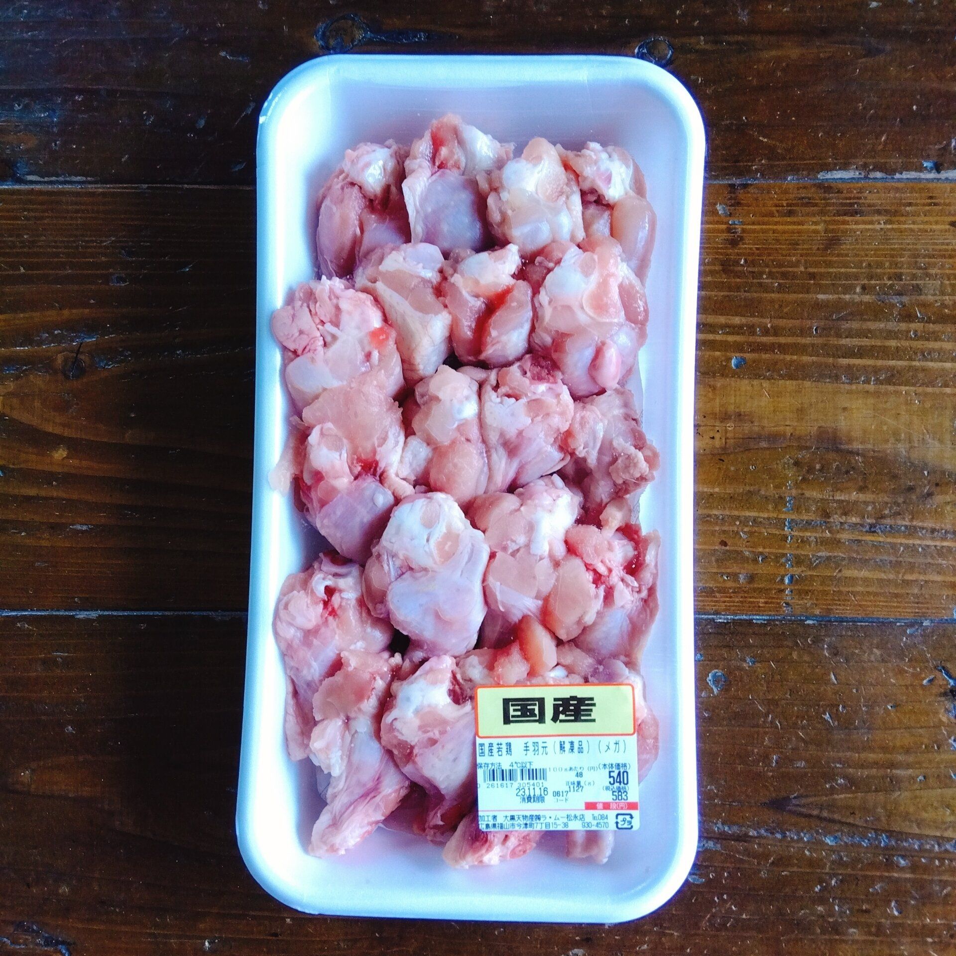 国産若鶏手羽元100g「51円」