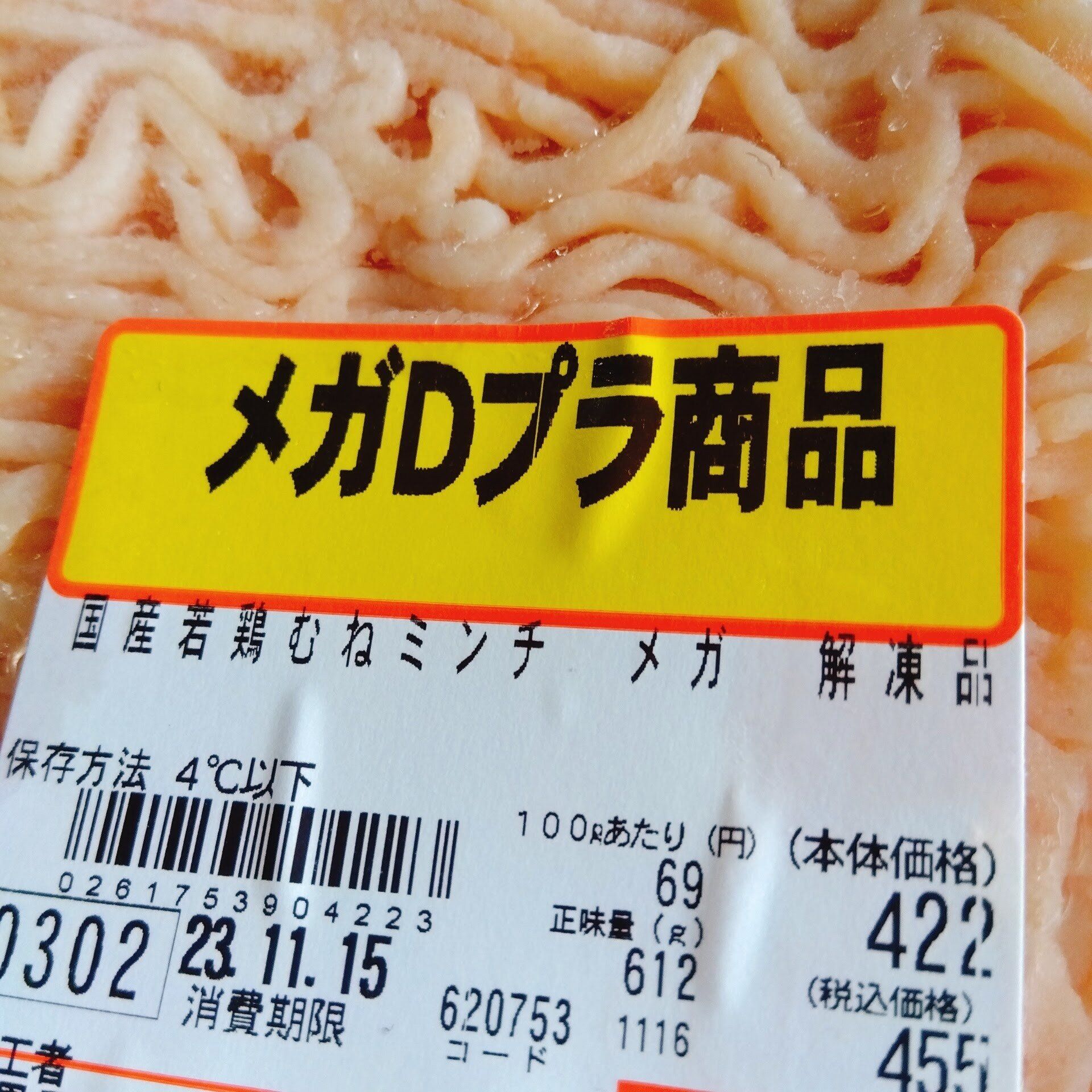 国産若鶏むねミンチ100g「74円」