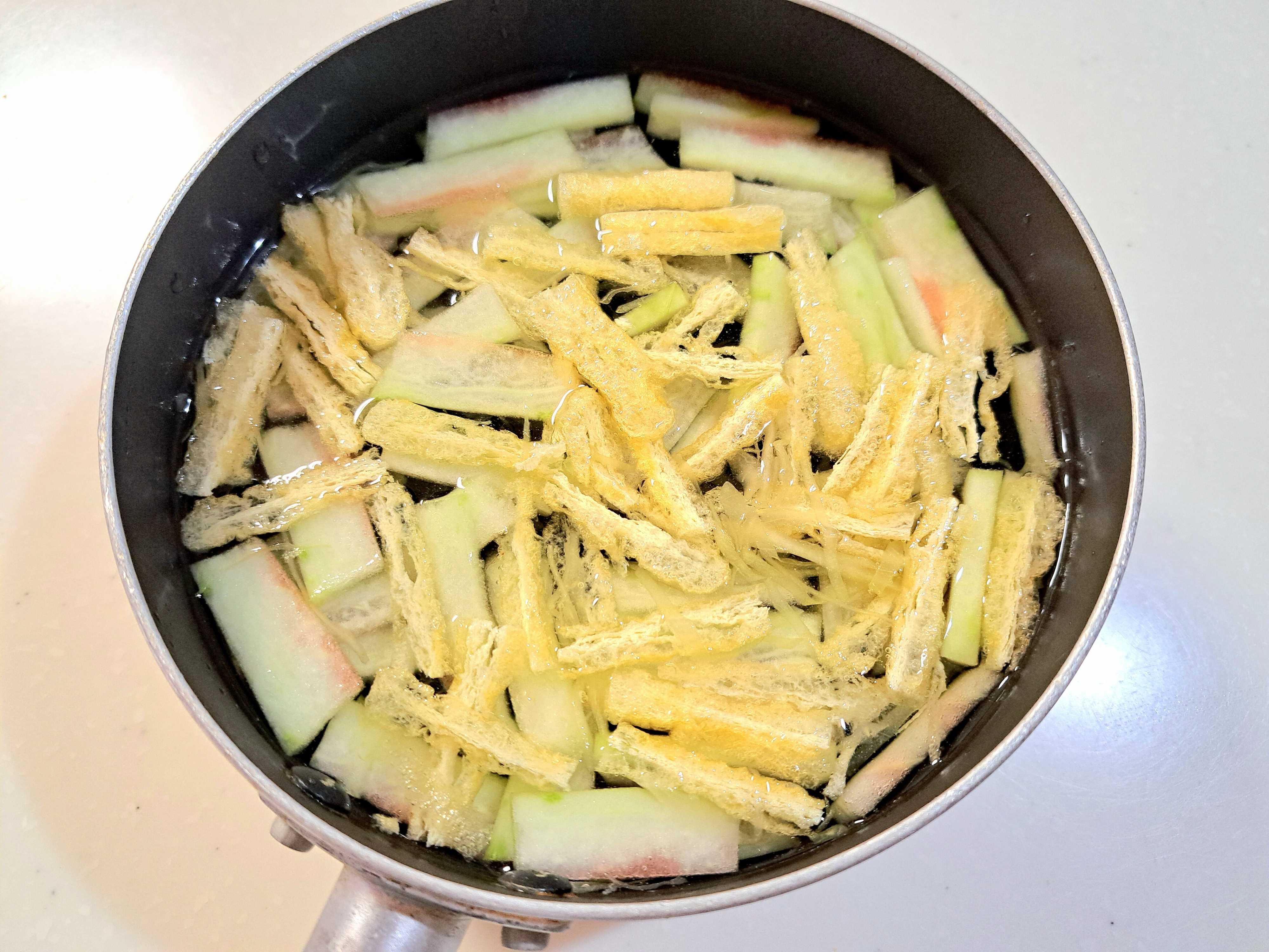 スイカを家に迎え入れたら、だいたいは大根感覚でお味噌汁の具にして食べています。