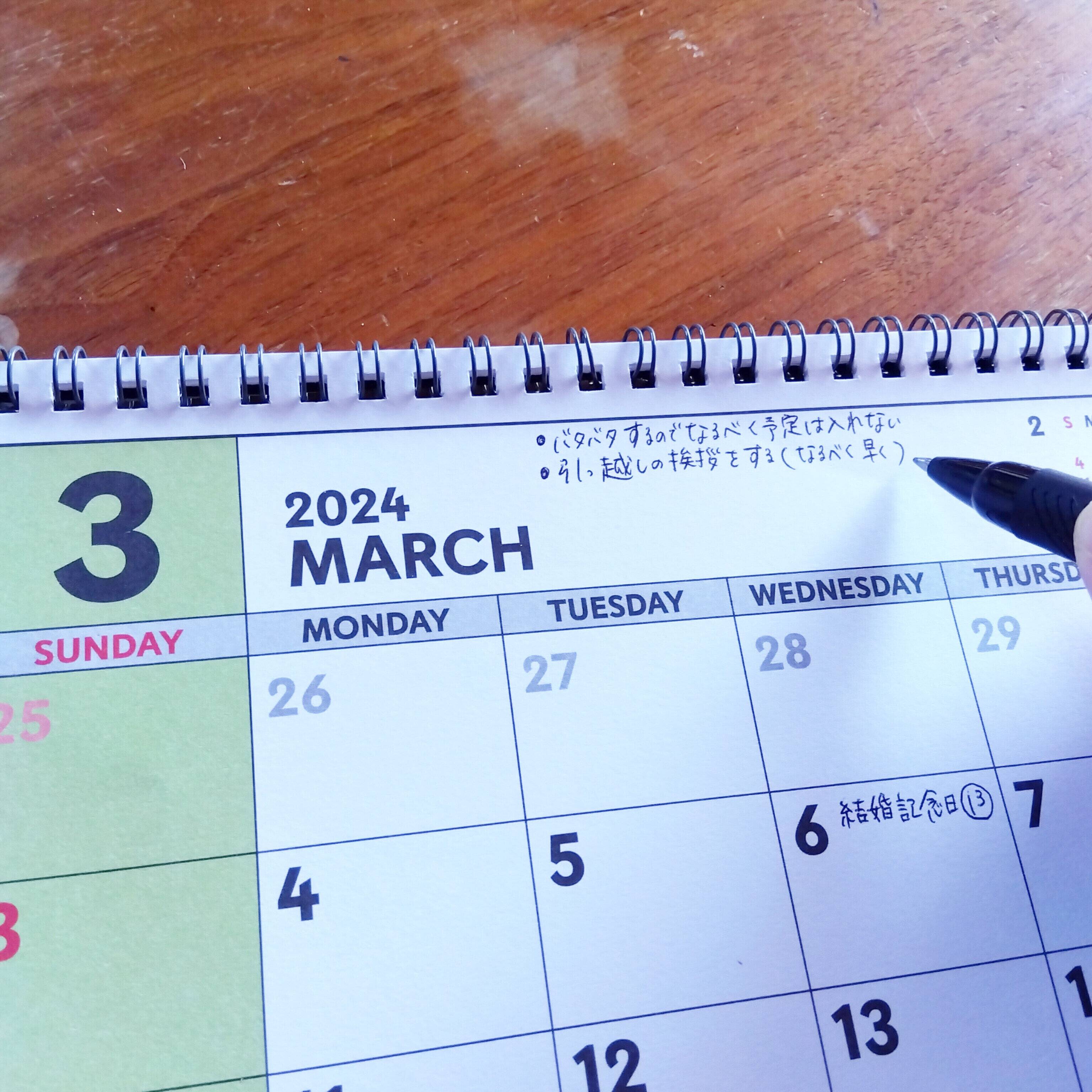 ただでさえ忙しい年度末に引っ越しが重なり、コミュニケーション不足になるので、休みの度に、引っ越しに関わるその週のスケジュールを家族で確認。