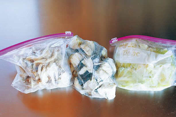 買い物から帰ったら野菜はカットしてから冷凍。「きのこ類は冷凍するとうまみが増すし、キャベツは繊維が壊れて火の通りが〇。カットしておくとすぐ使えて使い忘れがありません」。