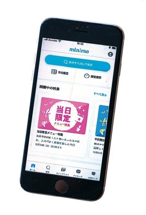 美容サロンの予約アプリ「minimo」には、新規オープンする店のサービスなどで0円カット案件が。「何cm以上カットするなどの条件付きの場合もありますが、無料でカットしてもらえるのは助かります」。