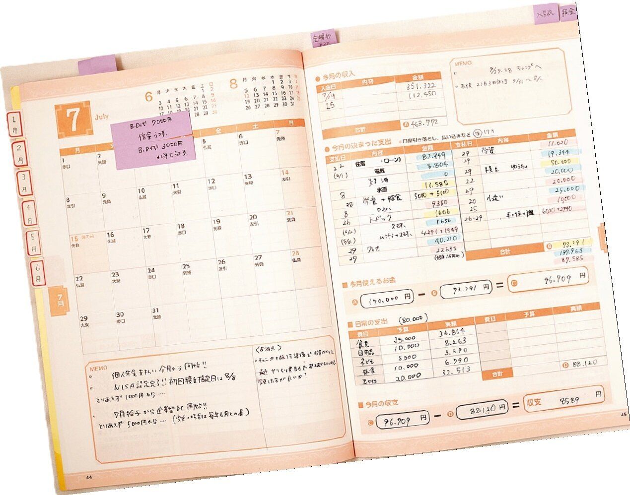 「支出増→予算増やす?」「こんなことがあった→気をつけて!」など、メモして家計を強化。