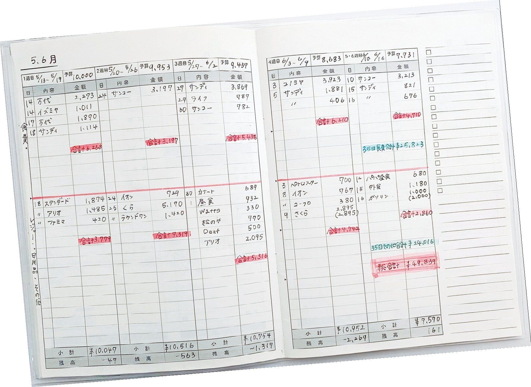3 5週間後、やりくり費の集計結果を書く