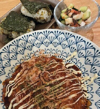 主菜はライスペーパーを生地代わりにすることで、フライパンで簡単に作れるお好み焼き。