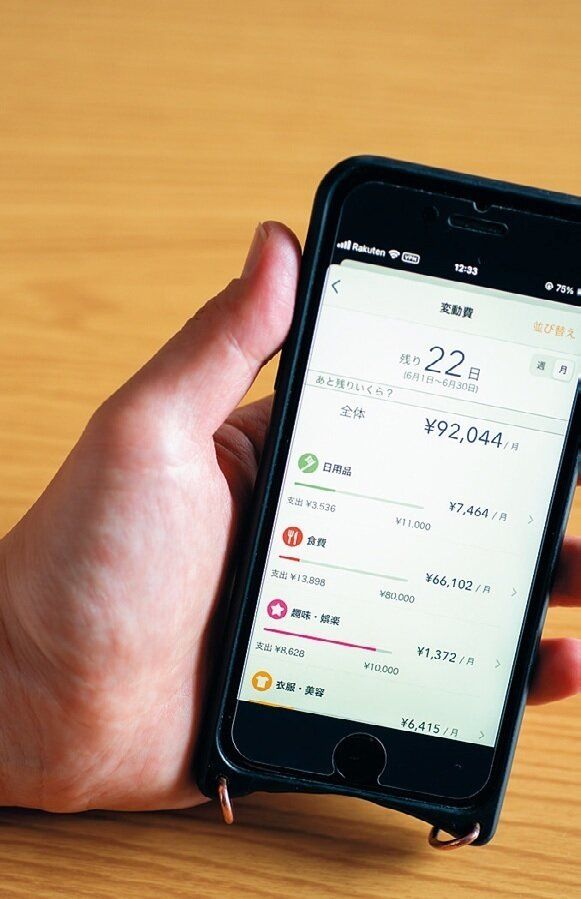 買い物後に使った金額を入力→自動的に残り日数と残金が表示される仕組み。さらに各口座と連携させることで総資産がひと目でわかるように。やりくりをする時間も手間も激減。