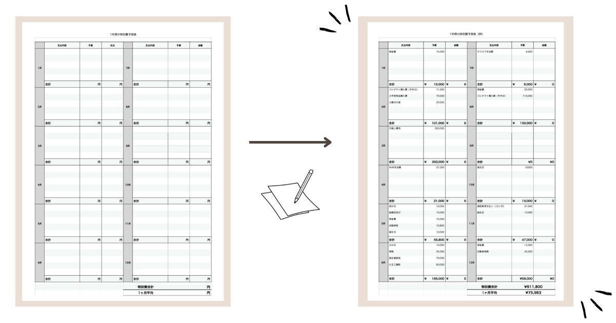 実際に特別費を書き出してみて、「こんなにかかるの!?」とびっくりしているかたも多いのではないでしょうか?