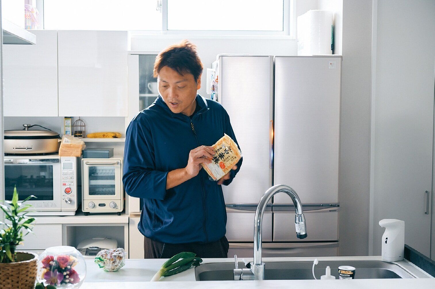 突撃したのは、築2年のいわゆる狭小住宅。「狭いから何でもすぐ取れるし、置く場所がないから不要な物が増えなくていい」と、八木さんご夫婦は笑顔で案内してくれました。倹約家としても有名な八木さんは収入が不安定な職業だからこそ、「限られたお金で家族が幸せに暮らすにはどうすればいいか」をゲーム感覚で楽しんできたそう。「お金は必要な物を得るための単なる道具。たくさんあるから幸せなのではなく、上手に使って自分や家族の心が満たされれば、めっちゃ幸せ。“大富豪かどうかは心の持ち方次第”が八木家のポリシーです」。