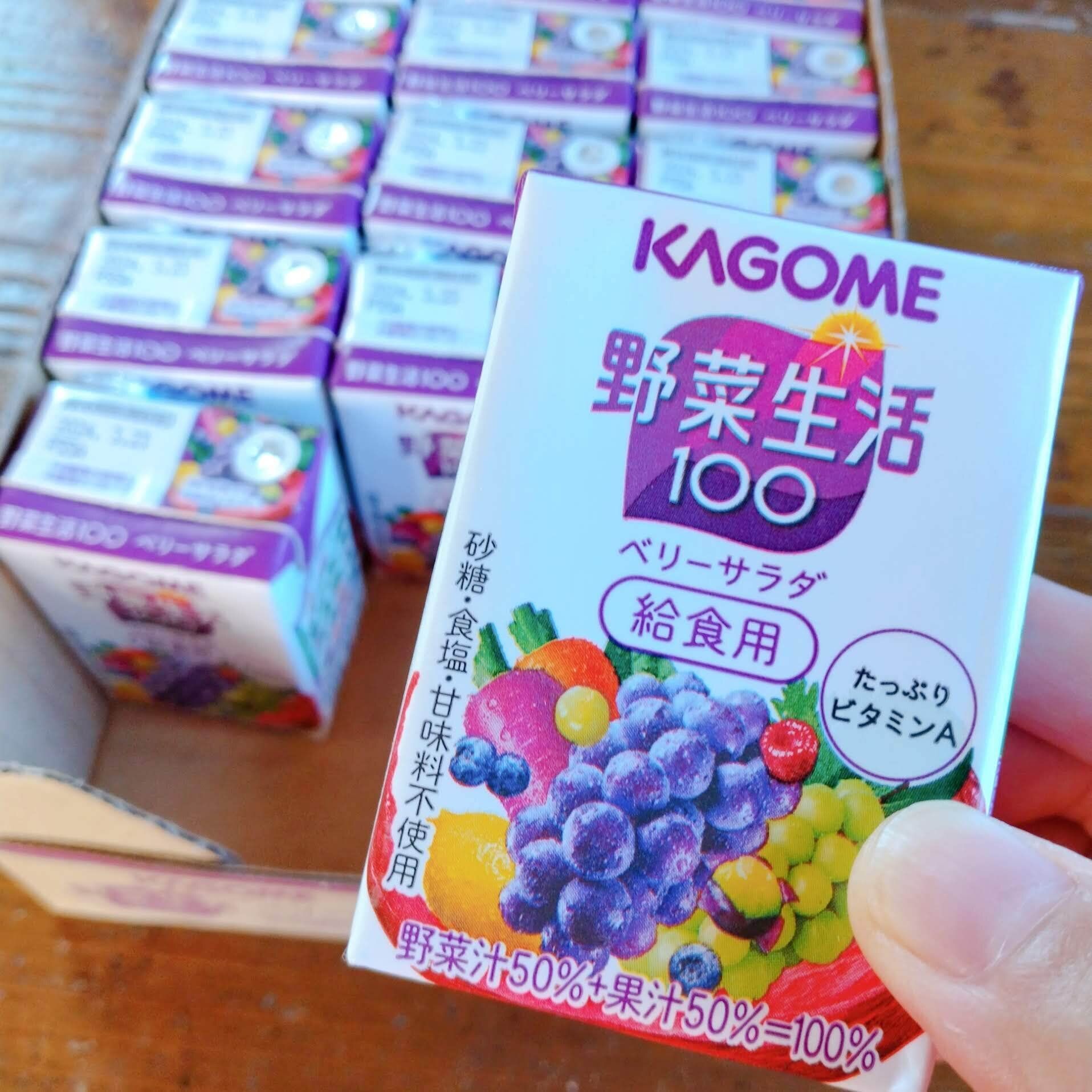お弁当は野菜たっぷりが理想ですが、入れる野菜がないことも。そんな時には野菜ジュースを足しています。